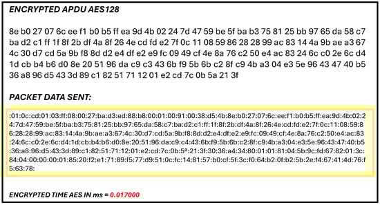 To compare ChaCha20 with AES128, the time it takes AES128 to perform the encryption is calculated, using the same virtual machine that was used to encrypt the APDU with the ChaCha20 algorithm. Figure 16 shows the result obtained.