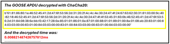 GOOSE APDU decrypted with ChaCha20 and calculation time.