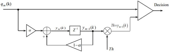 Figure 2 represents the block diagram of our proposed detector where the threshold Th is calculated in a way to ensure a constant false alarm probability. By comparing the test cell q(k) with the weighted threshold, it is ultimately determined whether the target is present [16]. The background estimate is formed from the previous scans and for mth scan; the output of the recursive filter is given by the following equation: