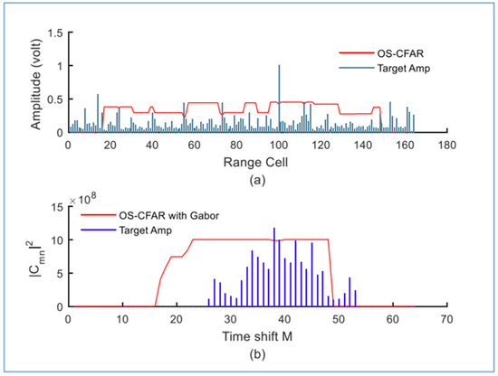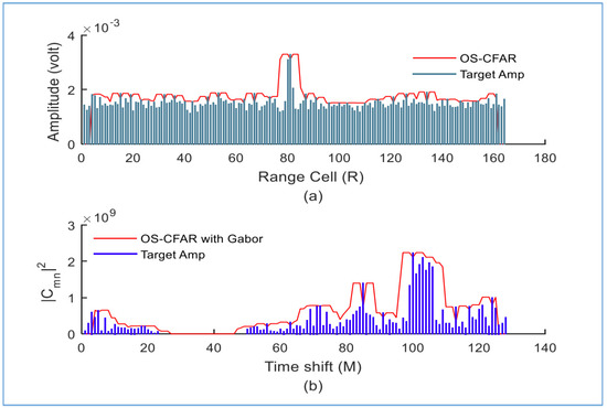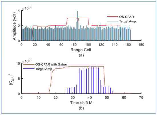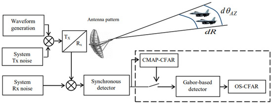 The clutter map constant false alarm rate (CMAP-CFAR) is a signal processing technique used to detect targets in cluttered environments. It is a type of CFAR algorithm that adjusts the threshold for detecting targets based on the level of clutter in the surrounding environment. Specifically, the detector output of each range-resolution cell is averaged over multiple scans to estimate the background level. Nitzberg [7] developed the CMAP-CFAR processor using digital filtering to update the background power estimate corresponding to each map cell in every scan [8]. There have been studies on CMAP-CFAR detection systems that explore various background distributions [9,10,11,12]. The main advantage of using a CMAP-CFAR algorithm is that it can help reduce the number of false alarms generated with the radar system. This is especially important in scenarios where the radar is operating in a cluttered environment, such as in a city or near a body of water. To enhance the efficiency of the CMAP-CFAR device, it could be combined with another technique to increase reliability and interest.