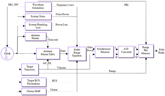 The radar receiver is modeled as shown in Figure 11 and is implemented using the set of real parameters of a search radar.