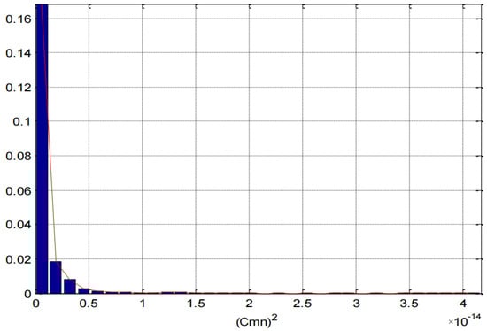 The following figure (Figure 12) illustrates the probability density function of the signal X(m) and shows that the radar echo at the output of the proposed detector follows an exponential distribution [23].