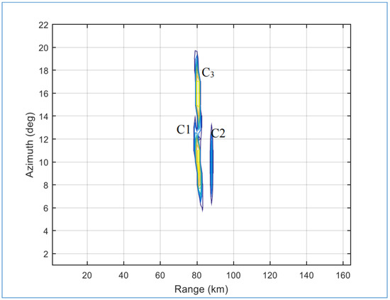 The Doppler frequencies of the three targets (C1, C2, and C3) are shown in Figure 26 to show the separation power of the proposed detector and the conventional detector.
