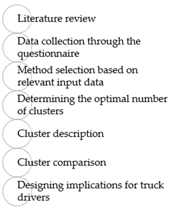 The profile of the Slovak and Czech truck drivers is determined using two-step cluster analysis. In detail, this tool generates homogeneous groups with similar driving behavior. Both continuous and categorical data are analyzed using the two-step cluster approach. It is possible to analyze quantitative variables simultaneously with multiple scale units and nominal scales. It is assumed throughout the procedure that categorical variables have a multinomial distribution, continuous variables have a normal distribution and all variables are independent. Additionally, the automatic calculation of the ideal number of clusters is included in the added benefits. Larger samples with more than 500 respondents are used with this technique [34]. Cluster analysis is quite often used in scientific research [35,36,37]. The procedure includes several parameters, such as the distance measure, optimal cluster number and cluster quality [38].