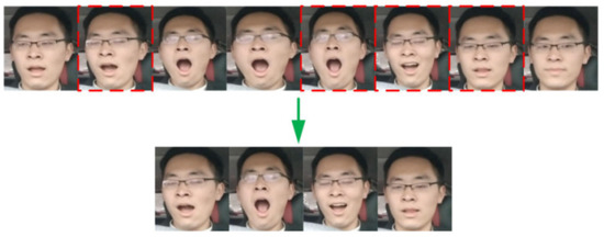 To address the challenge of low accuracy in face recognition and feature point extraction, the academic community has proposed various improvement schemes. Zhu Feng et al. [33] enhanced face detection accuracy significantly by integrating an improved YOLO v3 method with the Kalman filter algorithm for face detection and using the boosting tree algorithm to extract facial feature points, effectively solving the problem of missed detections caused by glasses and hats. Although this method has made progress in accuracy, its complexity and computational cost are higher. Wang et al. [34] pointed out the correlation between drivers’ eye position and ethnicity, greatly improving positioning accuracy through a skin color recognition model and a bidirectional integral projection method, but their accuracy may be limited to specific groups. Yang et al. [35] combined 3D Convolutional Neural Networks (3D-CNN) and Bidirectional Long Short-Term Memory networks (Bi-LSTM) to propose the 3D-LTS network, which effectively recognizes subtle facial movements, improving the accuracy of mouth feature point extraction and yawn detection, as shown in Figure 4. Although this method performs excellently in dynamic feature recognition, it still faces challenges in real-time performance and resource consumption.