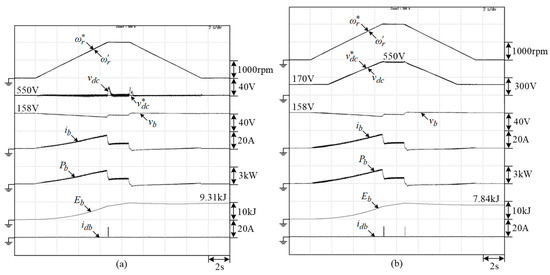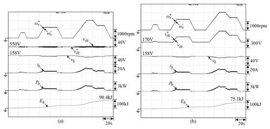 - The EV SRM drive is powered by battery via interleaved bidirectional interface converter. The fixed and varied DC-link voltages boosted from battery are used to power the motor drive, and their comparative performance is evaluated. The loss-consumed battery energies under the programed speed patterns yielded by various DC-link voltage approach are demonstrated, as shown in Figure 12 and Figure 13.