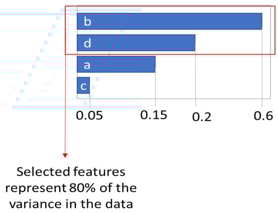 Conceptually, if a model has four input variables called a, b, c, and d, the RF regressor attributes a feature importance value to each input. In Figure 1, input b has a feature importance of 0.6, input d has a feature importance of 0.2, input a has a feature importance of 0.15, and input c has a feature importance of 0.05. Therefore, input b is the most important feature and represents 60% of the variance in the data. Input d is the second most important feature and represents 20% of the variance in the data. Inputs b and d combined represent 80% of the variance in the data and could be used as a reduced model of the system.