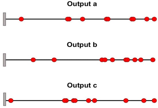 Upon comparison of the figures of the modes of case 1 (Figure 7) and 2 (Figure 11), it can be seen that the selected sensor locations are similar for both cases, suggesting the robustness of the method according to mesh size. Comparing Figure 8 and Figure 9 with Figure 12 and Figure 13 shows that reducing the number of elements of the beam does not affect the accuracy of the proposed methods in representing the modal characteristics of the beam. The accuracy of the method is not reduced because 20 elements are sufficient to represent the modal content of the beam up to the considered natural frequency (the first seven bending modes).