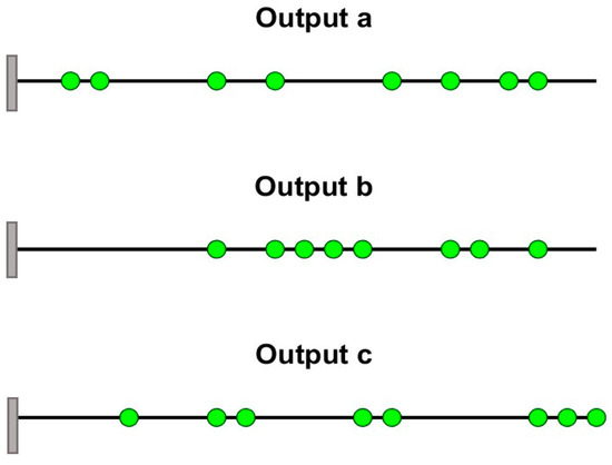 into , which corresponds to “sensed” modal vectors (contains the DOF where sensors will be placed), and , which corresponds to the “omitted” partition of the eigenvector (no sensor will be placed at these DOFs). The stiffness and mass matrix can also be partitioned accordingly, and Equation (1) becomes