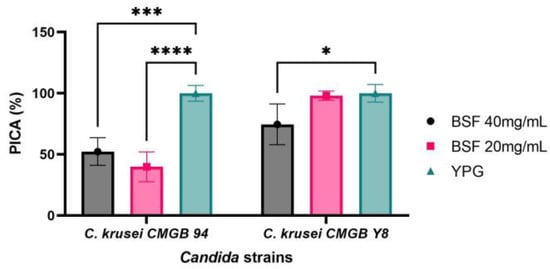 The microbial adherence inhibition percentages (PICA%) in the presence of concentrated biosurfactants were calculated using Equation (2), as described by [37,38].