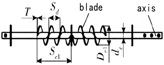 Two-sided spiral device. Note: Sc1 is the length of the spiral blade, Dc1 is the spiral outer diameter, Sd is the pitch.