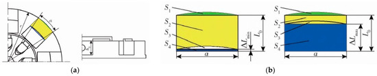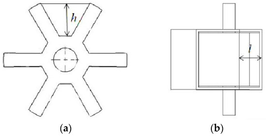 Schematic diagram of partial structure of groove wheel fertilizer discharger: (a) groove wheel; (b) shell. Note: h is the depth of the groove wheel; l is the effective working length of the groove wheel.