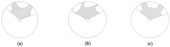 Different cross-sectional shapes of spiral sheaves: (a) circular arc, (b) spoon shape, (c) trapezoid.