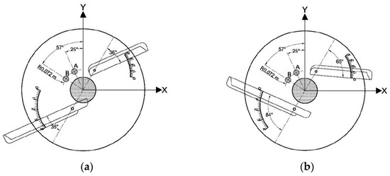 Przywara et al. [36] conducted a bench test employing a four-factor experimental model to investigate the impact of parameter settings on the average radius of the disc fertilizer discharger. They analyzed the movement of three chemical fertilizers (urea, calcium ammonium nitrate, and ammonium sulfate) in discs with two different blade angles (as shown in Figure 23). Model variance analysis revealed that fertilizer type, blade configuration, and disc angular velocity collectively contributed to 91.74% of the variance in the average diffusion radius. Furthermore, linear multiple regression analysis indicated that fertilizer dust fraction and disc angular velocity had an overall impact of 82.72% on the variance of the average diffusion radius. Notably, among the research findings, the negative correlation between fertilizer dust fraction and blade angular velocity was as high as 72.77%, offering valuable insights for future research endeavors.