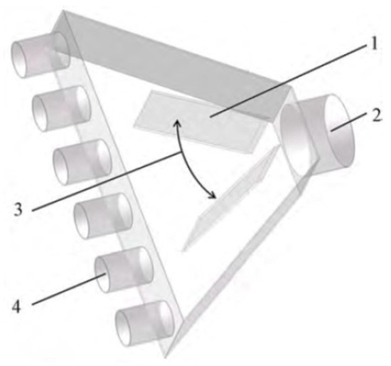 Structural diagram of the air distribution device. Note: 1. deflector; 2. air inlet; 3. deflector opening angle; 4. exhaust port.