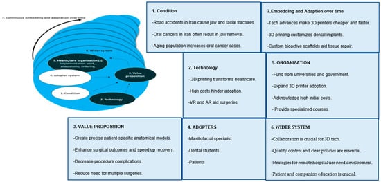 The 7 domains of the NASSS framework regarding the 3D printing approach in maxillofacial surgery in Iran are evaluated and summarized below (Figure 2).