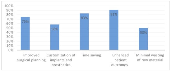 Survey responses of maxillofacial surgeons regarding advantages of 3D printing.