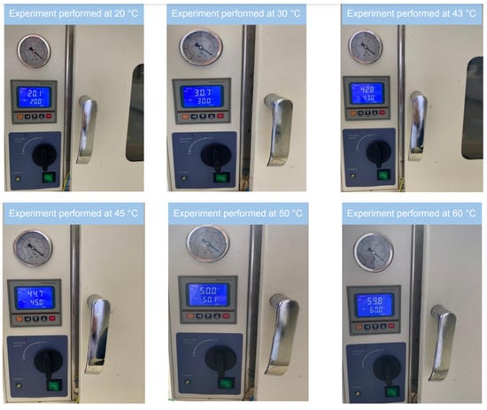 To monitor the behavior of the battery at different temperatures, battery capacity experiments were performed at 10 °C, 20 °C, 30 °C, 40 °C, 50 °C, and 60 °C using a water-circulating cooling bath (Figure 2) and drying oven (Figure 3). Due to the change observed between 40 °C and 50 °C, battery capacity experiments were performed at 43 °C and 45 °C to more accurately investigate this range.