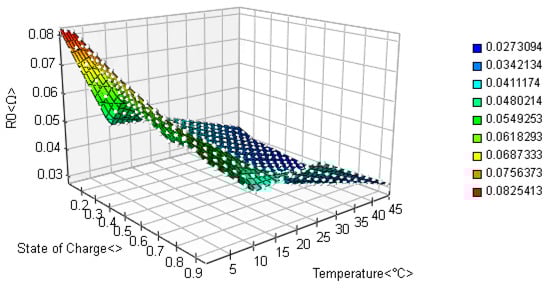 Figure 4 shows that the highest capacity value was observed at 43 °C. Considering battery heating during the use of EVs, the battery operating temperature was determined to be between 0 °C and 45 °C. The reason for setting the battery temperature in this range is that if the battery goes out of the ideal operating range, the charging current to be obtained from the energy obtained from regenerative braking will be directed to the SC instead of the battery. Using batteries for charging at low or high temperatures causes permanent capacity losses in the battery [17]. Considering the results obtained experimentally, although the Aspilsan company states that this model battery can operate up to 60 °C in the catalog of use, the temperature is limited to 45 °C to prevent the temperature increase caused by regenerative braking in the battery within the scope of this study.