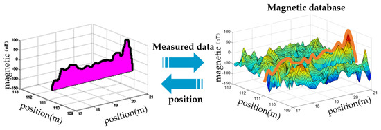 Traditional methods, including DTW, MAGCOM, and filter-based approaches, are fingerprinting methods that work by comparing a measured magnetic field sequence with magnetic sequences stored in a constructed database. They then find the most similar matching sequence to determine the current position [14]; this process is demonstrated in Figure 1.