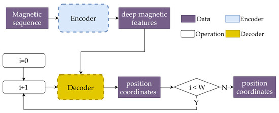 The decoder is calculated W times. At each step i, the previous positions, along with the deep magnetic features extracted by the encoder, are fed into the decoder. In this way, the final position is recursively predicted. Since we focus only on the current position, which is the last point within the sequence, once i = W, the last position is pushed out as the final result. Next, we describe the encoder and decoder in detail.