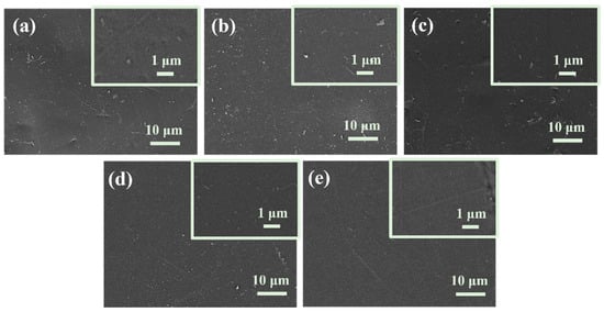 SEM images of the membrane surface of (a) sPEEK, (b) sPEEK/DCX, (c) sPEEK/DCX-s90°C, (d) sPEEK/DCX-CX24h, and (e) sPEEK/DCX-CX190°C.
