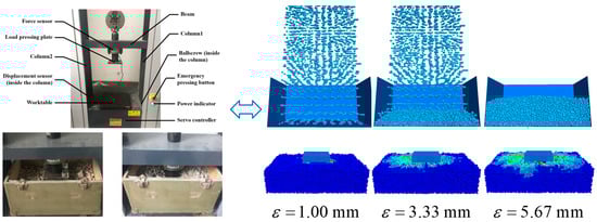 Considering the predominantly rigid nature of the pebbles, this study adopts the ‘Linear Model’ [24] as the fundamental DEM contact model for analysing pebble interactions. The key parameters of the pebble DEM model, particularly the friction parameter, are determined through open-top box compression tests, as detailed in [25]. The testing and simulation procedures are illustrated in Figure 7.