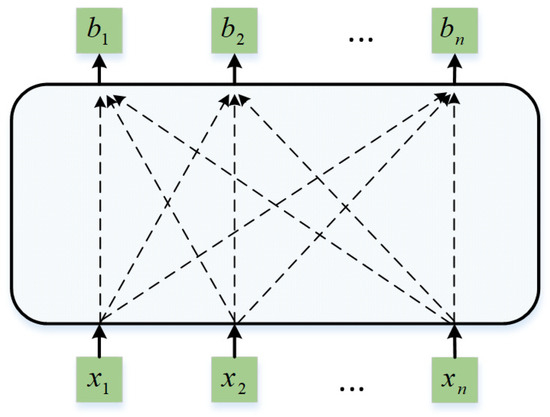Self-attention allows each unit to capture the overall information, while different units can be calculated or processed in parallel, which can be understood as self-attention, find the relationship between each feature and consider whether one feature will have an impact on the other. The basic principle is shown in Figure 4.