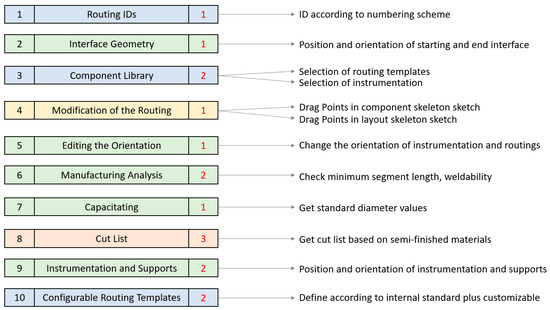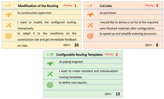 To specify the configuration system, a user group consisting of piping engineers, construction supervisors, a purchaser, and project managers was interviewed and invited to create user stories based on their experience and obstacles they observed in past projects (Figure 3). Before creating a feature list, the development team prioritized tasks, estimated effort, and then mapped user stories to features. (Figure 4). To simplify the implementation process, a modular architecture was chosen.