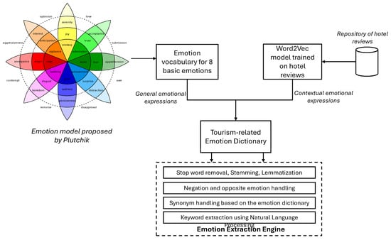 Contemporary research studies have advanced beyond sentiment as basic polarity to detect extended categories of emotion. Unsupervised approaches such as word embeddings have been used recently for emotion detection and to understand the distributed representations of words based on syntactic and semantic word relationships [21,22,23]. Several studies have published emotion lexicons that combine general expressions for each emotion that can be used to categorize texts [12,24,25]. Moreover, many studies have developed supervised machine learning models to predict the category of emotions on Twitter and online reviews related to tourism and hospitality that depend on previously annotated data [6,26]. In this space, deep learning models and language models have been extensively used to extract sentiments from online hotel reviews [27,28]. However, most of the approaches have focused on only positive and negative sentiments and are thus incapable of exploiting the richer meanings of deeper human emotions ingrained in the reviews. For example, the emotions ‘anger’ and ‘sad’ are classified as ‘negative sentiments’, although they convey vastly different feelings. R. Li et al., in their recent research, outline that sentiments accentuate only the broad category of emotions as positive, negative and neutral; therefore, future studies should pursue creating a more granular form of emotion representation [28]. The identification of the emotions of customers at a granular level from their online reviews is crucial to properly exploit the power of social media [29]. These models rely on previously annotated data to train the machine learning model and lack deeper exploration of the derived emotions which could be used for decision-making.