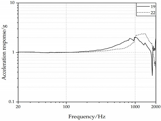 The experimental frequency response curves of point 19 and point 22.