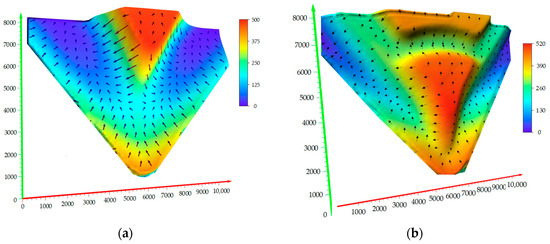 Insert corner vector maps. (a) Rake face of the insert with the SF chip former. (b) Rake face of the insert with the SGF chip former.