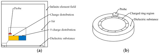 When the tested material is a dielectric substance, due to its low conductivity, surface charges adhere to the material surface. Different measured potentials exist at different distances between the probe and the charges. Therefore, by establishing a two-dimensional axisymmetric model as shown in