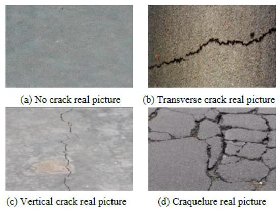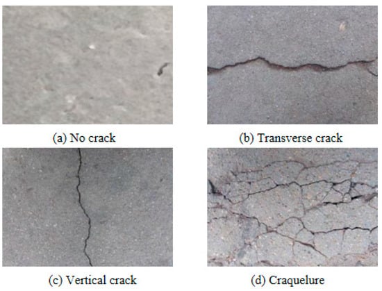 - Wang, L. Research on Classification and Detection of Pavement Cracks Based on Machine Vision. Master’s Thesis, Harbin Institute of Technology, Harbin, China, 2019. [Google Scholar]