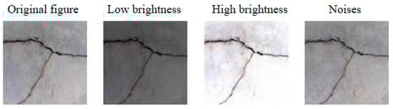 The overall interference of the image is first taken into consideration. By incorporating the overall interference, a range of potential external factors can be simulated, including noise during image transmission and distortion resulting from image compression. By incorporating global interference into the image, the model can acquire a wider range of feature representations, enhance its adaptability to real-world interference scenarios, and demonstrate improved versatility across various types of interferences. The results of processing the original dataset images to simulate possible scenarios are shown in Figure 12. The model’s robustness is improved by utilizing data augmentation techniques, which generate various datasets by introducing variations in brightness and adding noise to the original image. The following methods were employed: Python and the OpenCV library were utilized to implement a random selection process for determining pixel locations within our image database based on the noise level. Subsequently, these selected pixels were assigned with either the brightest or darkest color in order to introduce salt-and-pepper noise. The image’s brightness was manipulated by multiplying each pixel value with the corresponding adjustment factor, incorporating both the original image and parameters for brightness adjustment. To ensure that our results fell within an acceptable range of expression, we constrained all pixel values between 0 and 255.