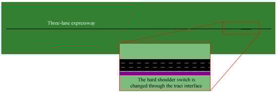 The expressway hard shoulder refers to the pavement area with a certain strength adjacent to the carriageway. Various countries place differing emphasis on the shoulder-setting. In typical countries such as the United Kingdom and the Netherlands, both the right and left hard shoulders can be utilized for HSR. According to the Federal Highway Administration (FHWA), expressway use is increasing at a rate of roughly 2% per year, and this trend is expected to continue. The survey also highlighted that traffic congestion has not only increased, but has also become more unstable over the past 20 years []. Relevant research has shown that in congested road sections during peak hours, temporarily allowing traffic to run on hard shoulders and implementing coordinated speed control can increase the traffic capacity by 15% to 30% without the need for road expansion [,,], thereby alleviating regular traffic congestion problems.