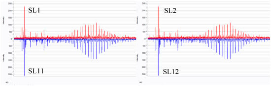 Figure 1 shows the comparison of the MALDI-TOF mass spectra of two groups of samples from the same brand but different purchase locations. Minor differences could be displayed on the spectrum through comparison, and the percentage of differences could be obtained through subsequent statistical comparisons.