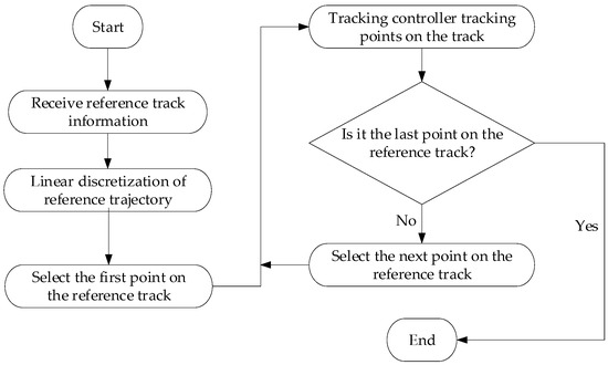 Figure 14 is a schematic diagram of lateral motion control. The trajectory planning and tracking controller receive the reference path information, the vehicle state information, and the estimated tire cornering stiffness. Through the trajectory rescheduling module and the MPC tracking control module, the front-wheel angle is finally output to the actuator of the ferry vehicle, and the lateral motion control of the driverless ferry vehicle is finally realized.