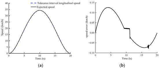 Speed tracking and speed tracking error diagram when the expected speed is variable: (a) speed tracking effect and (b) speed tracking error.