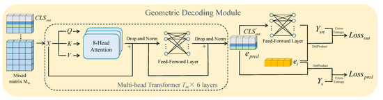 represents multi-hop neighbor information of the source entity, capturing a coarse-grained contextual situation. Meanwhile, fine-grained neighbor information is derived from the first-hop neighbors of the source entity. To integrate and unify these different levels of contextual information, we link the first-hop neighbor information with . The first-hop neighbors serve as intermediate information that are used to explicitly establish the association between the source entity and its context, thus creating hierarchical contextual information. Inspired by Chen [22], we utilize a multi-head Transformer to integrate the first-hop neighbor entities and the relations . The source entity and relation, and , respectively, are also used as input to ensure that the information of the triple can be fully processed. Thus, each input group consists of the flag vector , together with or and or , which are sequentially fed into . The first-hop neighbor information is combined through using , and their corresponding outputs are concatenated and stored as the neighbor matrix as