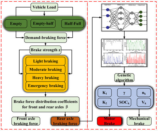 In their research on driving axle mechanical and electric motor brake force distribution, many scholars use algorithmic optimisation or fuzzy control to find the optimal distribution coefficient trajectory. Li X et al. [