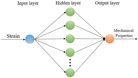 The constitutive model describes the law of macroscopic stress variation with strain during the deformation of a material. The constitutive model is not only the theoretical basis of metal forming problems, but also the key factor for numerical analysis. In the past, for the mechanical problems of engineering structures, traditional theoretical research methods were usually used. For example, Peron et al. [12] employed the strain energy density (SED) approach to predict the tensile strength of polyetheretherketone in corrosive environments. Subsequently, they studied the fracture of notched Ti-6Al-4V via the SED approach and the theory of critical distance (TCD) method [13]. Other similar studies can be found in the literature [14,15,16,17,18]. In particular, the empirical constitutive relationship has been considered an effective method for predicting plastic deformation in metals [19,20], but the high complexity of mathematical modeling has limited its wide application. With the application of artificial intelligence in the field of materials, machine learning has been utilized to construct constitutive models and has gained wide application in recent years [21,22]. For example, artificial neural networks (ANNs) have been widely used to accurately predict the hot deformation behaviors of nickel-based superalloys [23,24,25,26,27,28,29].