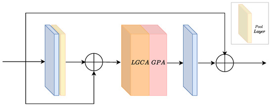 where is a feature map, where H and W are the height and width of the feature map and C is the channel of the map. Let , and is a corresponding feature for each channel in , where and . The final output result is determined collectively by the trainable parameters , , and , where , , and . It is worth noting that the parameter complexity of LGCA is , significantly less than the of SE-Net.