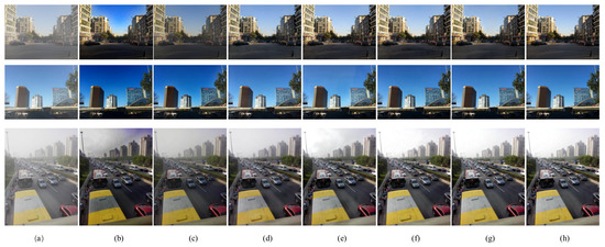 Atmospheric conditions such as fog and haze induce light refraction or scattering, impeding the direct propagation of light. The intersection of distorted rays with reflected light from observed objects leads to visual degradation in images captured by imaging devices, including diminished clarity, loss of detail, and color distortion [1,2]. These challenges not only distort the representation of the real environment but also present complications for subsequent application processing [3,4,5,6]. Therefore, the restoration of clear images from foggy ones is of paramount importance.