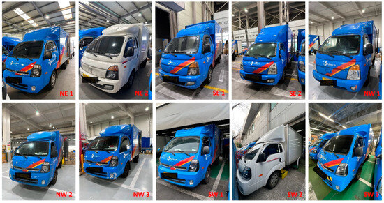 Vehicles measured for last-mile delivery vibration. NE, SE, NW, and SW refer to northeast, southeast, northwest, and southwest, respectively, and the following number indicates the trip number.