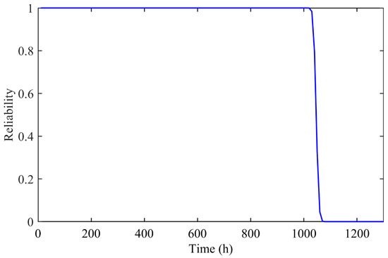 By using the method proposed in this paper to calculate the reliability and setting the time interval at , the curve of reliability over time can be obtained as shown in Figure 6.