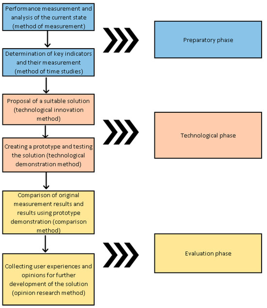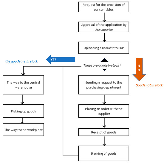 Table 4, which shows the times of the individual phases of the expenditure. As we can see, the process was shortened from the original 13.33 min to 2.4 min. By making consumables available directly at the workplace, the influence of external factors that influenced employees’ choice of consumables was reduced. Employee performance increased, which had an immediate impact on meeting company-wide production standards.