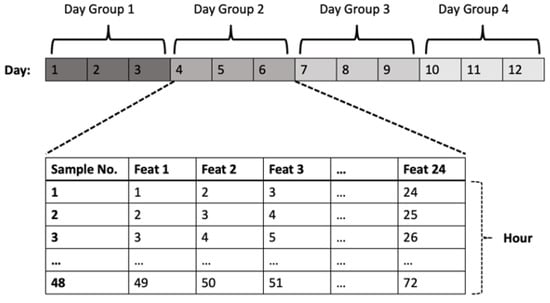 The training, validation, and test data for the good timeline are created based on randomly ordered three-day time windows to account for different seasons in the training data. To increase the number of samples in the training, validation, and test data, we have used a sliding window approach as depicted in Figure 7. First, we assign hourly resampled data to a 3-day long day group and then apply a sliding window approach within each 3-day group. This makes sure there is no data leakage. With this approach, we can increase the number of total samples while enabling the random assignment the training, validation, or test dataset. For our first prediction evaluation, we created the test dataset for the bad timeline in a similar manner, and we have aligned the randomization over all wind turbines to compare the same timelines in the same training, validation or test categories.