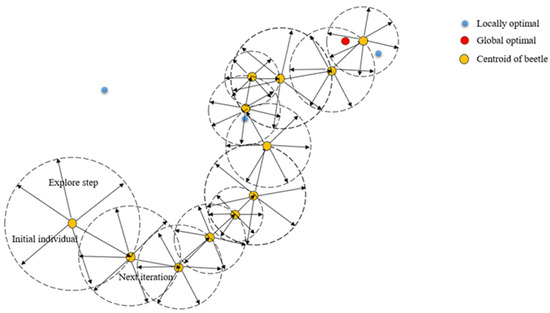 Schematic diagram of standard Beetle Antennae Search algorithm search process.