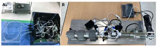 The Tricuspid Regurgitation Generator schematically represented in Figure 3 and the real hardware in Figure 4B show that the system consists of two rotary pumps, a flow meter, and a rapid-response mechanical pressure sensor. The first pump ensures a consistent flow, while the second prevents backflow, facilitated by feedback mechanisms from the flow meter and the mechanical pressure sensor. The generated flow rate can be controlled in increments of 10 cc/min, representing various TR severities.